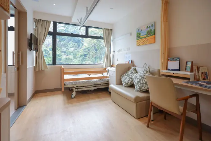 房間設計寬敞且明亮,設有獨立洗手間,為住客提供高私隱度與便利性。室內採用柔和的色調和無障礙設計,兼顧安全及美感,營造出舒適宜人的居住環境。無論是日常起居、靜心閱讀,還是與親友聚會,皆能提供一個溫馨而具尊嚴的空間。